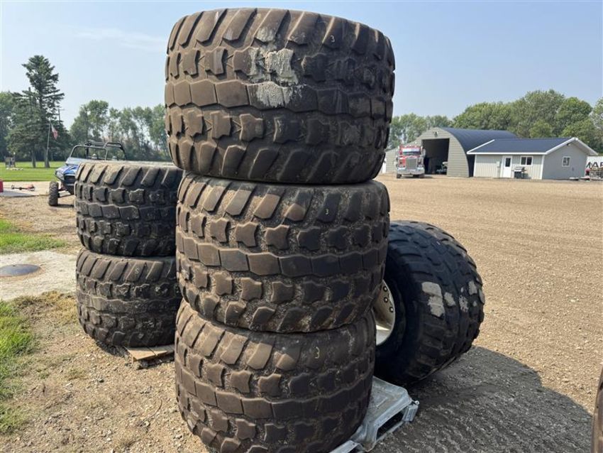 This lot includes six Michelin CARGOXBIB High Flotation tires, size 710/45R22.5. These radial agricultural/implement tires are designed for heavy loads and reduced soil compaction, offering excellent durability and traction for field and road use. Sold as a complete matching set of 6.