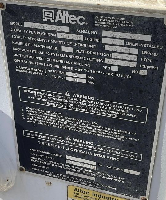 Excellent investment opportunity. A 2014 Freightliner 6X6 with the Cummins ISL, Allison Automatic, and an Altec AM900-E100 boom. This truck features a 105ft working height and a double man bucket - AND it only has 45k miles and only 7800 engine hours! Check out these photos and call with any questions. Terry at 601-665-5855