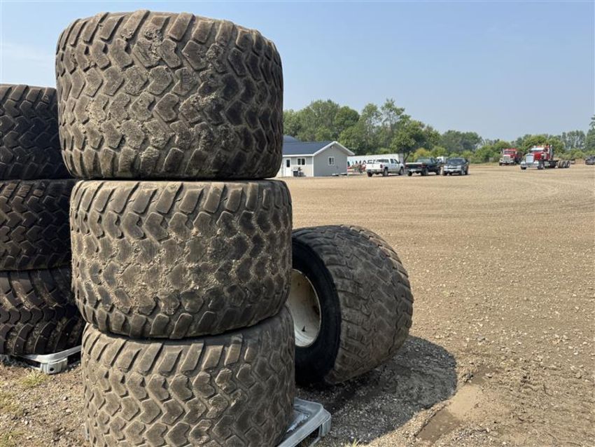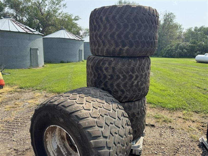 This lot includes six Michelin CARGOXBIB High Flotation tires, size 710/45R22.5. These radial agricultural/implement tires are designed for heavy loads and reduced soil compaction, offering excellent durability and traction for field and road use. Sold as a complete matching set of 4.