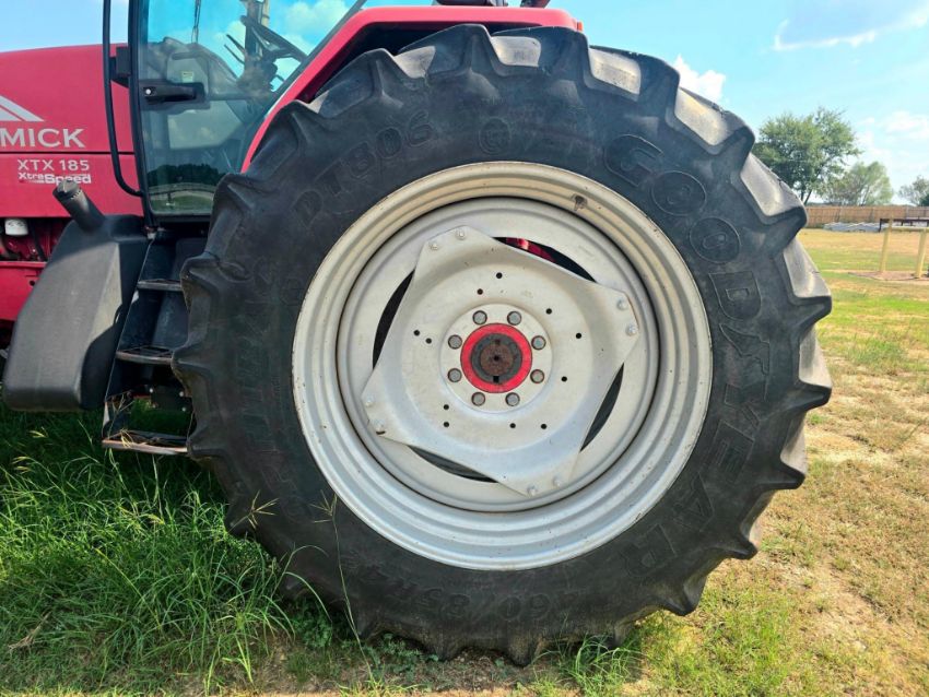 Selling a 2003 McCormick XTX 185 XtraSpeed Tractor (Serial C4JJE3500184). This unit is powered by a 6-cylinder Iveco turbo diesel engine rated at approximately 185 horsepower. It comes with a powershift transmission and 4-wheel drive (MFWD) for dependable field performance. The tractor is equipped with an independent 540/1000 RPM PTO, a Category III 3-point hitch, and hydraulic capacity suitable for large implements. It rides on 480/70R30 front tires and 20.8R42 rear tires. Note: the right rear tire loses air.