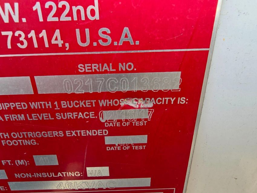 Built on a short wheelbase chassis, this truck features a 6-door utility service bed that provides excellent maneuverability while offering secure tool and equipment storage. The unit is equipped with an ETI 40 boom with a 45-foot working height and a rotating bucket, allowing efficient positioning for overhead access.