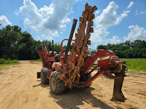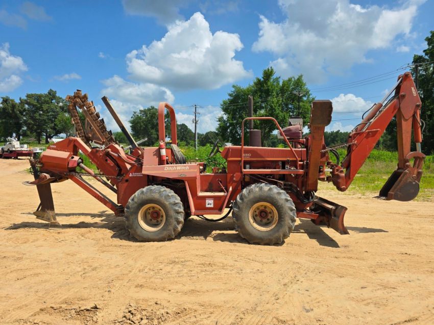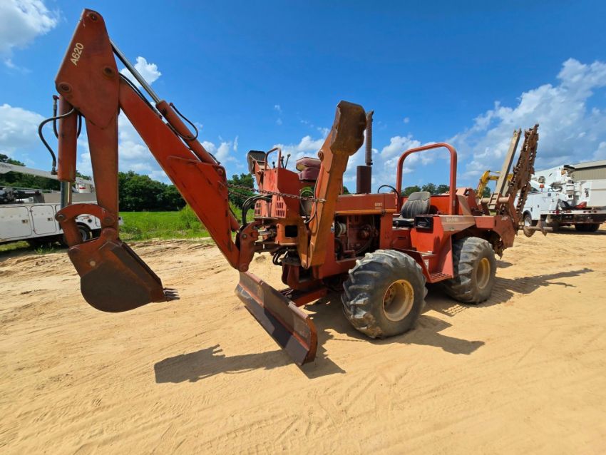 Ditch Witch 6510 A620 trencher with 9046 hours. Equipped with a cable plow, backhoe attachment, trencher boom, and front blade-everything operates as it should. Powered by a dependable Deutz diesel engine that starts and runs strong. Ideal for utility installation, irrigation, and underground construction work. Solid multi-function machine ready for the job site.
