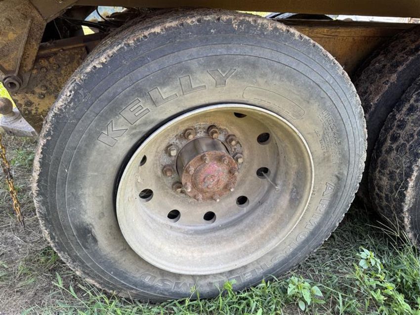1988 Kenworth W900B Dump Truck CAT 3406B engine. 393,853 miles. 9-speed Eaton Fuller transmission. Equipped with dump bed and hydraulic lift (15ft long, 8ft wide, 64in tall). Aluminum frame with break at very rear of truck, truck was loaded and frame snapped when lifting load on hill. Tandem rear axles. Leather interior. GVWR approx. 80,000 lbs