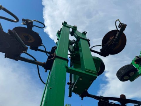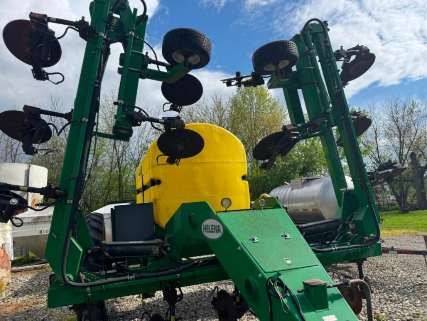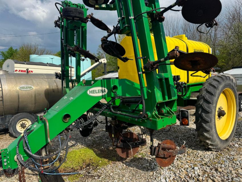 2014 Schaben Industries Sidedresser 35-ft toolbar, 12-row configuration. 1,500-gallon poly tank. Ground drive pump system. Coulter injection units with adjustable row spacing. Heavy-duty 7inx7in toolbar frame. Tandem walking axle, 380/90R46 tires. Category 3 hitch. Hydraulic folding wings. Clean, ready-to-use unit for liquid side-dress application.