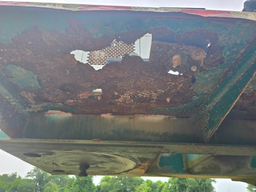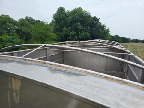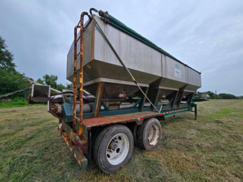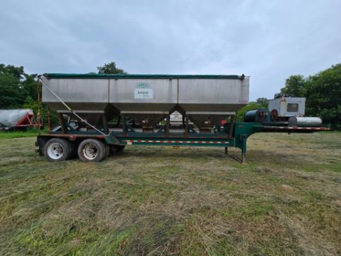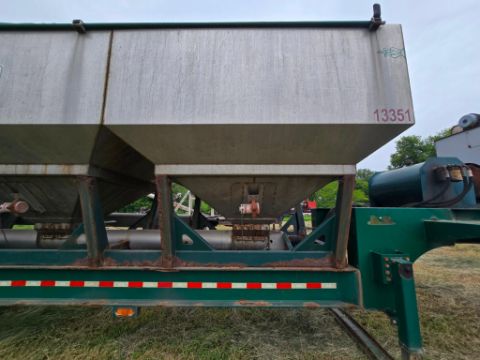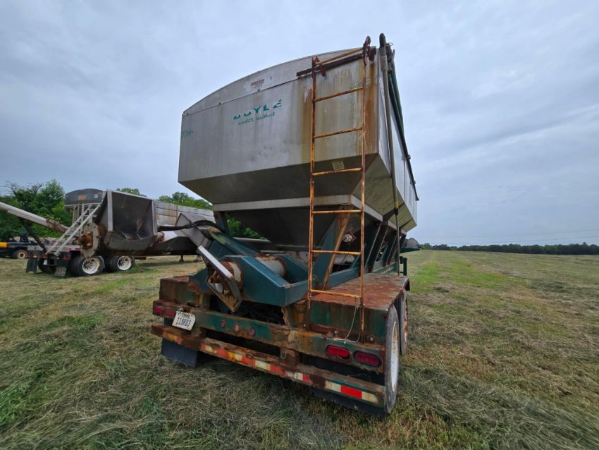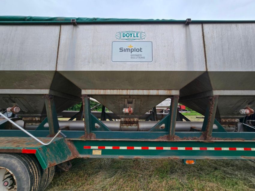 2014 Doyle Dry Fertilizer Tender Trailer equipped with a reliable Kubota diesel engine powering a fully self-contained hydraulic system. This heavy-duty unit features three stainless steel compartments for versatile product separation, stainless steel flighted augers, and a convenient side discharge auger for efficient material delivery. Built with hopper vibrators to ensure smooth flow and reduce bridging. Designed for high-capacity agricultural operations, this tender trailer is ideal for precision fertilizer handling and long-term durability in demanding environments.