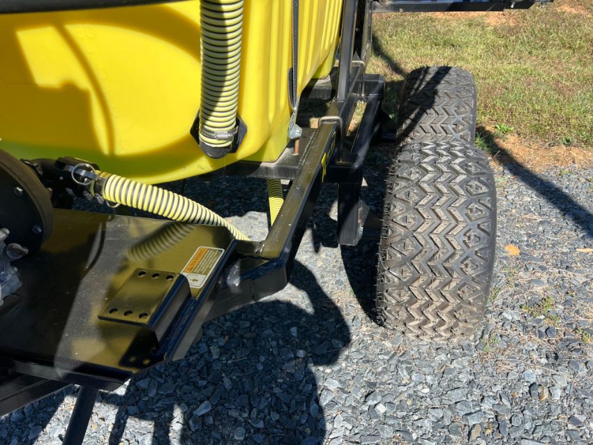 • Undercarriage features tongue-mounted shock absorber for providing a smoother ride and uniform spraying over uneven terrain.