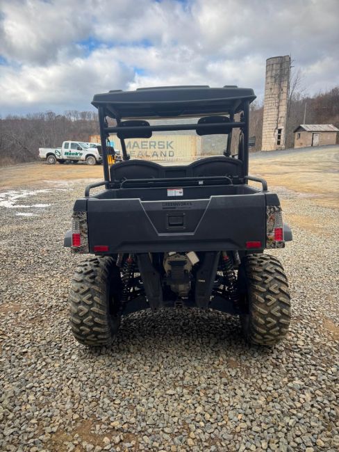 Low mileage (Demo Unit) 82V utility vehicle. All electric 82V/8kWh battery (equivalent to a 22hp gas engine per the manufacturer). Zero emissions. 40 miles per charge range (7 hour charge time). 27mph max speed. 4WD. 10 inch ground clearance. Independent front suspension. 72.5 inch wheelbase. Rear hitch towing capacity up to 1250 pounds. 32x42x12 inch spring-assisted cargo dump bed, rated for 330 pounds.