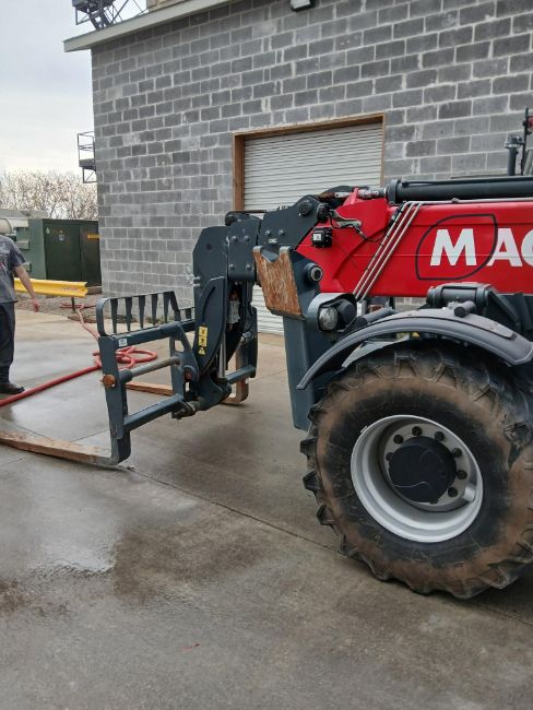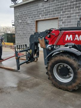 The amazing and innovative Magni 5.19P Telehandler. This machine: Reach up to sixty-one feet high with 4WD and hydrostatic transmission for ultimate traction and precise control. These machines have a large number of versatile attachments available and have automatic leveling, and RFID accessory recognition.
