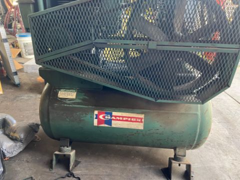 Offered at auction is a Kohler Magnum 10 air compressor, a portable, engine-driven unit designed for mobile air supply on jobsites, farms, and service trucks. Powered by a Kohler Magnum 10 engine, this compressor is well suited for running air tools, inflating tires, and supporting general maintenance and repair work where electric power is not available.