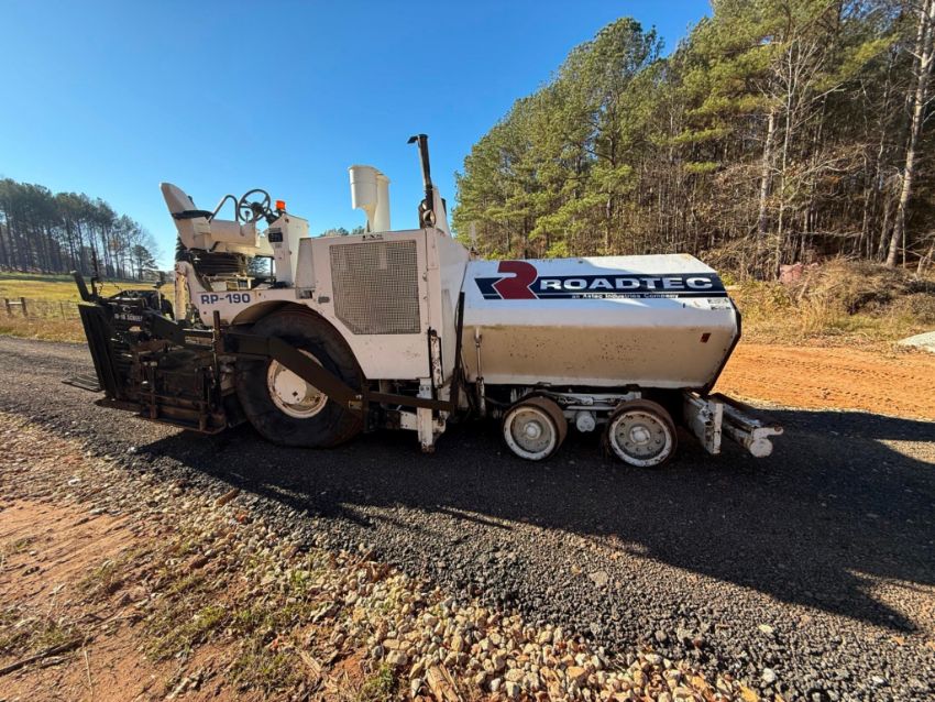 This Roadtec RP190 highway-class asphalt paver is a solid, reliable machine well-suited for highway, commercial, and large-scale paving applications. The machine is capable of paving from 10 feet up to 19 feet and is equipped with heated screeds that are operational, helping ensure consistent mat quality and proper material finish.