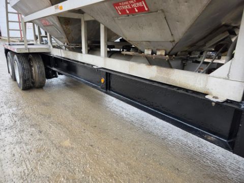 2016 KBH Fertilizer Tender Trailer built for efficiency and durability. This high-performance unit features an aluminum subframe and a self-contained hydraulic system powered by an Isuzu diesel engine. Designed with two stainless steel compartments, stainless steel augers, rear discharge, hydraulic doors, and clean-out doors for easy operation. Additional highlights include hopper vibrators, front and rear stainless steel fenders, rear entry ladder, and product clean-out ports. A top choice for agricultural and commercial fertilizer applications, offering reliable performance season after season.