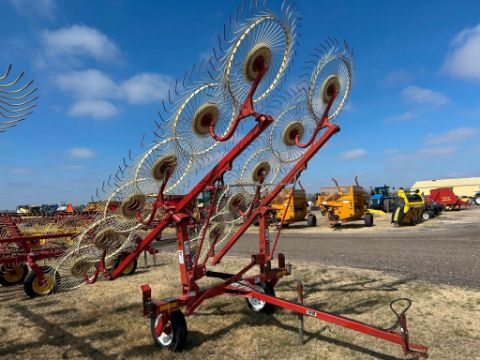 Up for auction is a New Holland HT154 hay rake in good working condition. The rake is missing a few tines here and there, but the majority remain intact, allowing it to continue raking hay effectively.
