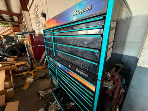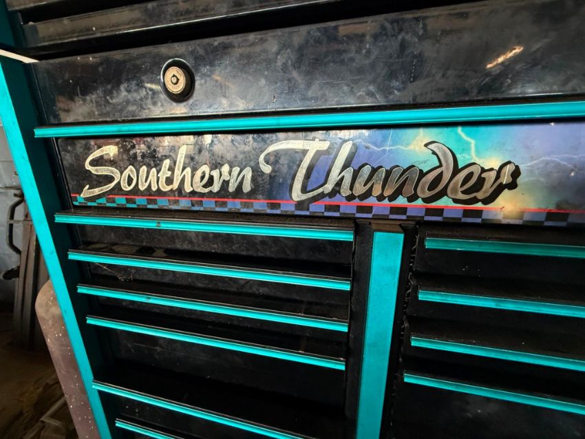 Offered at auction is a Snap-On Southern Thunder Edition 24-drawer tool box, a premium professional storage cabinet designed for durability, organization, and shop-grade performance. This special-edition box features Snap-Ons heavy-duty steel construction, smooth-glide drawer system, and bold Southern Thunder graphics, making it both a functional workhorse and an eye-catching addition to any shop or garage.