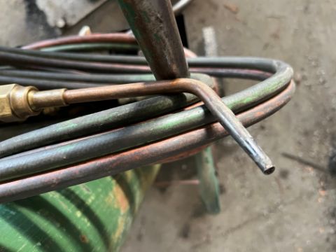 Offered at auction is a oxy-acetylene torch and regulator rig, a complete fuel-gas setup designed for cutting, heating, brazing, and welding applications. This system is commonly used in fabrication shops, farm and ranch operations, automotive repair, and industrial maintenance. The Foxy torch system provides reliable flame control and consistent performance for a wide range of metalworking tasks.